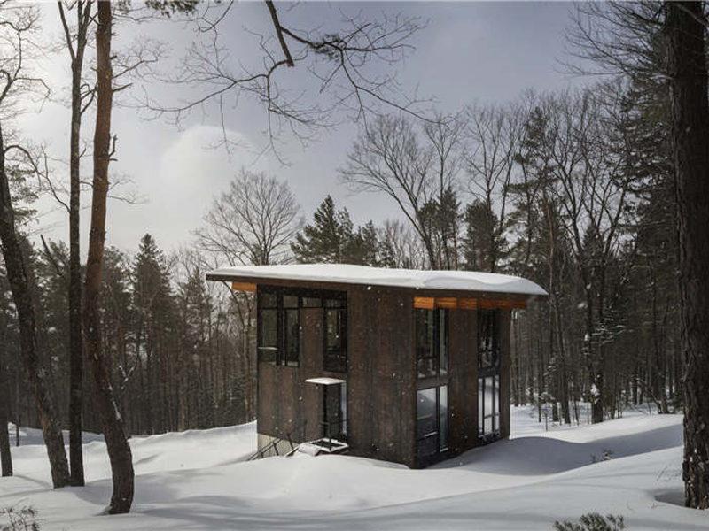 木屋的形狀和顏色設計主要是為了模糊外部和內部空間之間界限。木屋的設計旨在提供一個...